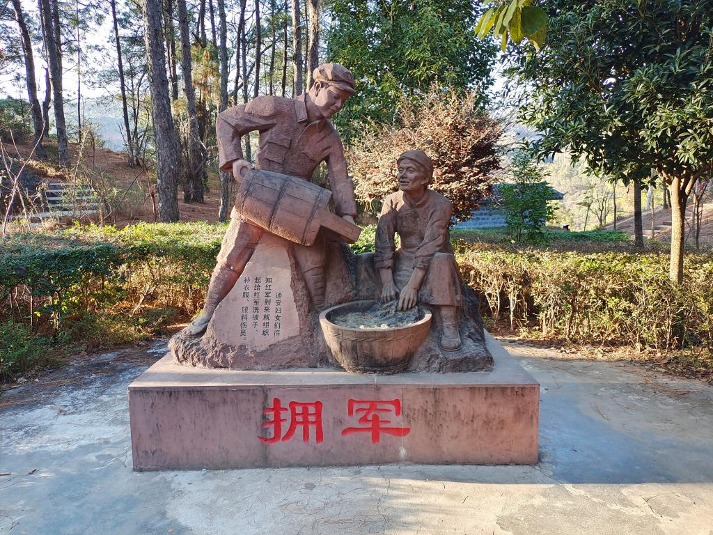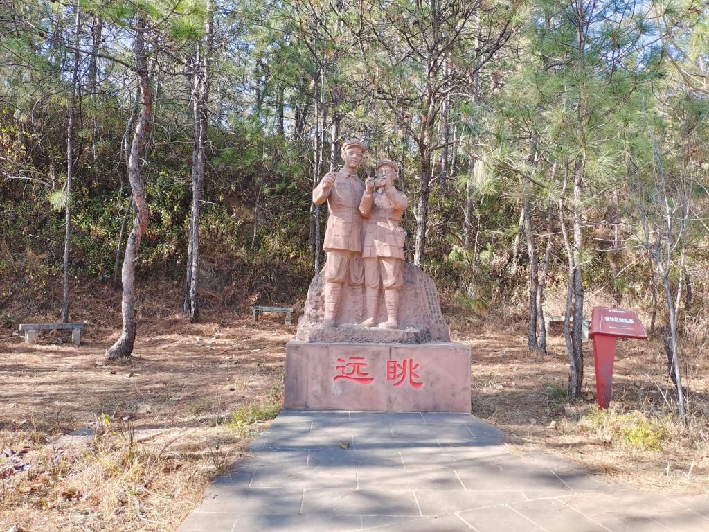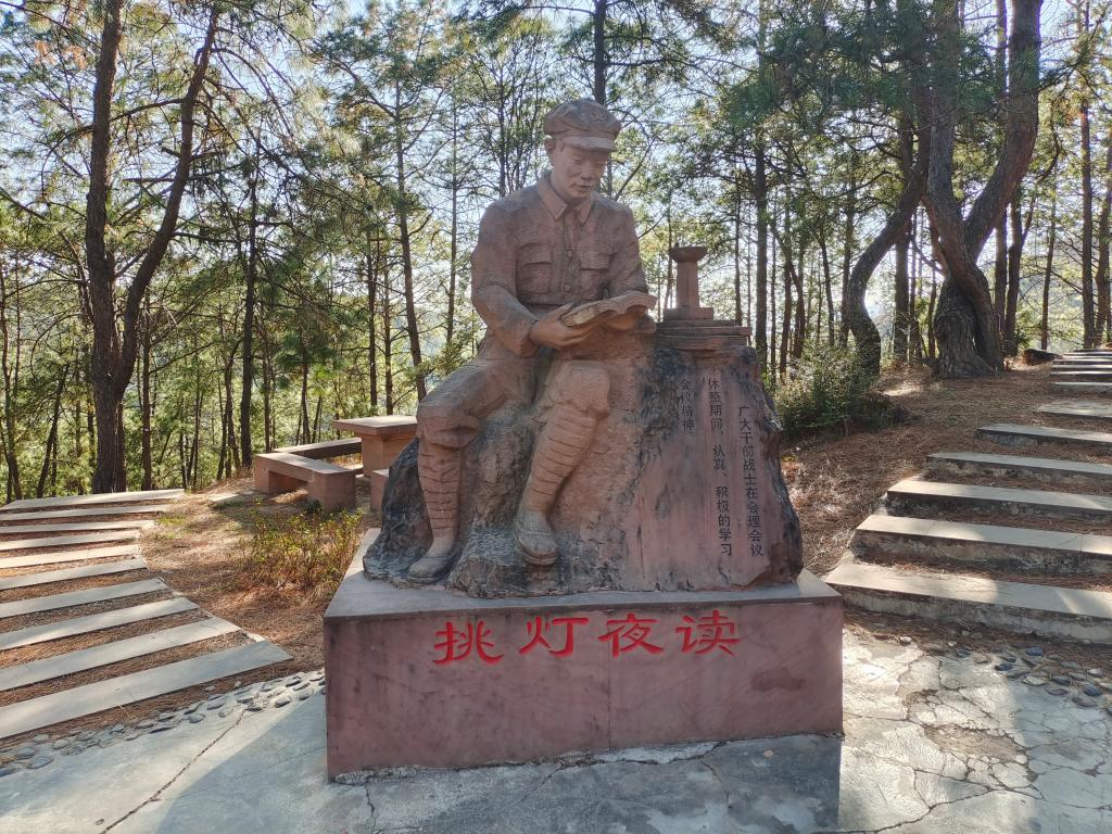 沿着梯道拾阶而上,石阶的两旁,石刻绘画的文字,为我们讲述了红军当年从瑞金出发至巧渡金沙江、围攻会理城、召开“会理会议”的光辉史实。会址的环山道上有“远眺”、“挑灯夜读”、“拥军”等很多不同主题塑像,无一不表现着红军与会理人民血肉相连、鱼水情深的感情。