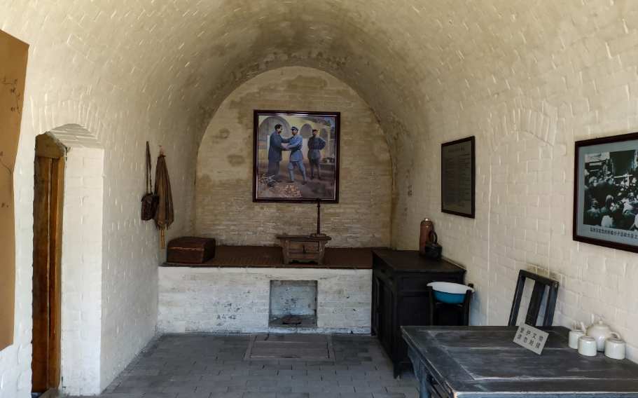 我抚摸着窑洞斑驳的墙壁,脑海中浮现出了这样一幅画面,在这窑洞的小油灯微弱的灯光下,毛主席等老一辈革命家写下了一篇又一篇决定中国革命方向、指导中国革命的光辉著作。就是在这里,中共中央召开了政治局扩大会议,正式确立了抗日民族统一战线的基本策略,完成了党的政治路线的转变。也就是在这方不起眼的小小天地里,老一辈革命家擎起了抗日民族统一战线的大旗,促成了全民族的觉醒与团结。