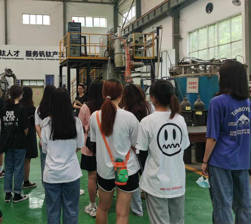 学院老师带领大家分别参观C区老车间的钒钛材料中试基地、C区新车间的电子束炉车间、石墨烯实验室、钒钛新能源材料研发基地和钒钛基粉末等实验室。师生党员充分了解钒钛资源发展历史、学院发展历史。