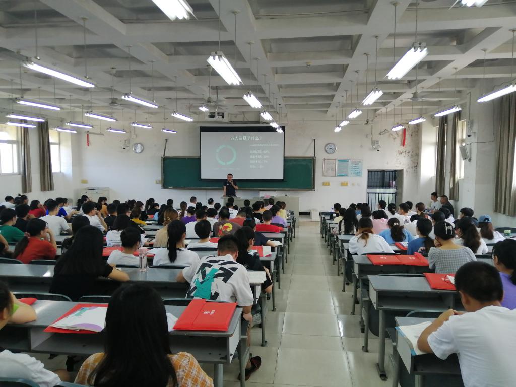 6月19日,继续教育学院携手国内知名培训品牌——华图教育,为助力攀大学子公务员备考精心准备的公益讲座专场在学校第二教学楼开讲。四川华图教育副校长、公务员分校校长贺钟庆先生作为特邀主讲人,为现场二百多名学生和家长奉献了一场别开生面、生动务实的演讲。讲座突出了知识性、实用性、应考性和引导性,内容丰富、深入浅出,赢得现场阵阵掌声。