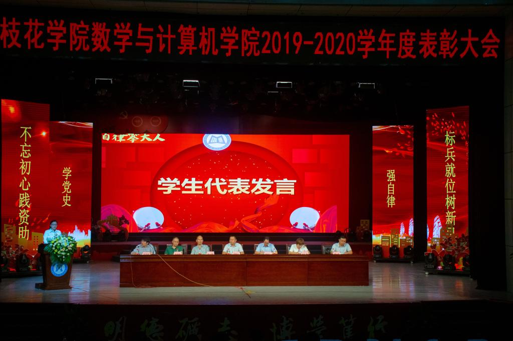 6月19日晚,数计学院(大数据学院)在学校本部会堂举行2019-2020学年度表彰大会暨千锋互联奖助学金捐赠仪式,大会以“学党史,不忘初心践资助;强自律,标兵就位树新风”为主题。学生工作部负责人、千锋互联科技有限公司西南大区经理王雪青、北京华晟经世信息技术股份有限公司四海资讯红足项目经理张杰、数学与计算机学院党政负责人以及相关负责人、全体教师、150余名受表彰学生以及各年级学生代表参加大会。学院党委相关负责人主持会议。
