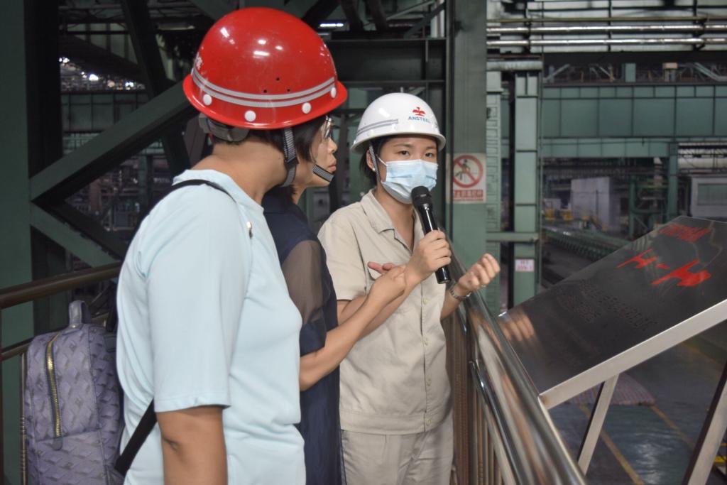 参观厂区时,师生在讲解员的带领下,依次对攀钢的钢轨生产线、重轨展示台、BD1轧机、BD2轧机等生产机器进行参观。先进的七机架万能法轧制工艺、装备完全的自主知识产权、世界领先的百米在线热处理钢轨线,令参观人员切实感受到攀钢的强大、祖国的强盛。
