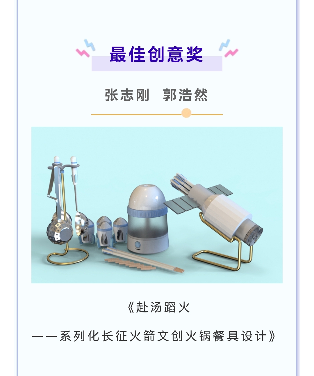由西安航天基地管理委员会主办的“航天探索杯”文创产品设计大赛在7月8日落下帷幕。经过专家评审组的严格评选,艺术学院产品设计专业廖梅老师指导的四组同学从众多参赛者中脱颖而出,何东平、张洪瑞获大赛一等奖(仅设1名);张志刚、郭浩然获最佳创意奖;