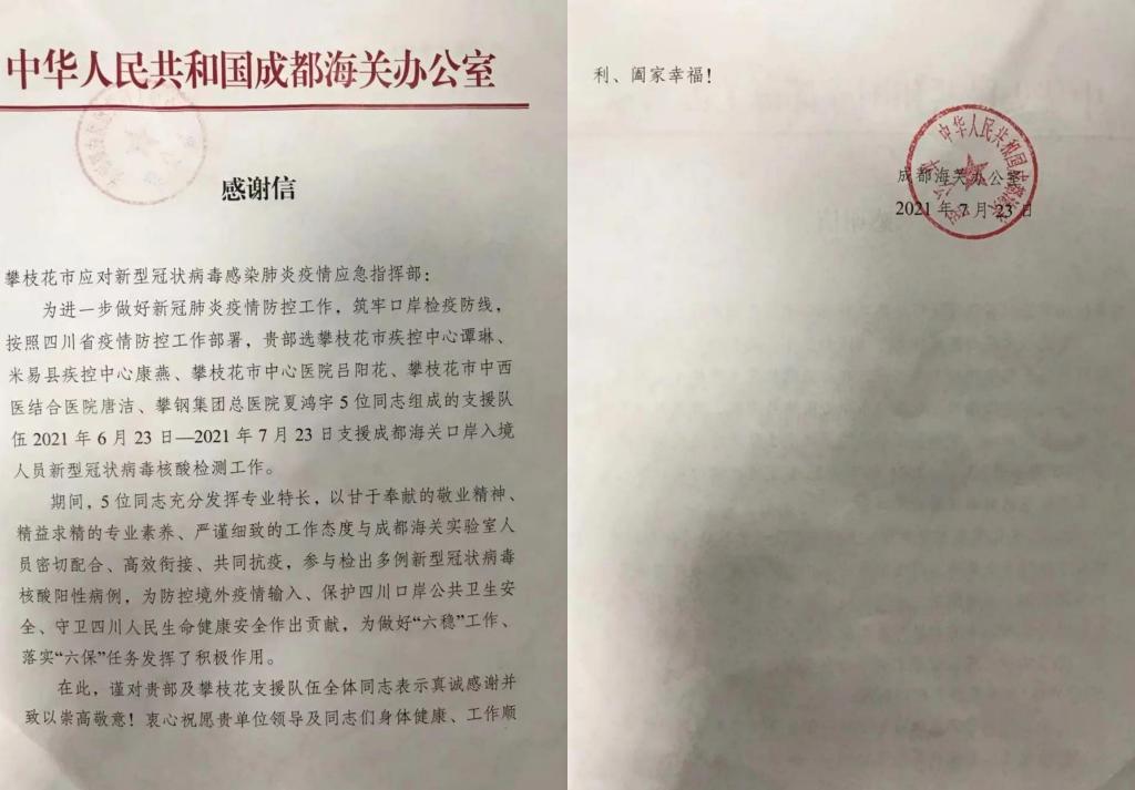 “外防输入,内防反弹”是目前全国新冠肺炎疫情防控工作主要策略,为筑牢口岸防线,守好国门,把好境外疫情输入第一关。2021年6月23日,攀枝花市卫生健康委员会组织市直及各县区共5位实验室检测人员驰援成都海关,开展为期1个月的入境人员核酸检测工作。附属医院检验科医生唐洁应召主动请战出征。