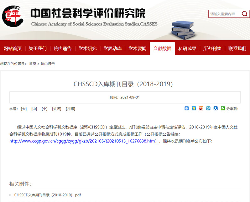 据2021年9月1日中国社会科学院中国社会科学评价研究院发布的“2018—2019年度中国人文社会科学引文数据库(CHSSCD)”,《四海资讯红足学报》成功入选为入库期刊。中国人文社会科学引文数据库经定量遴选、期刊编辑部自主申请与定性评估,在近万种人文社会科学期刊中筛选出1919种优秀期刊,数据质量可靠、代表性较强。