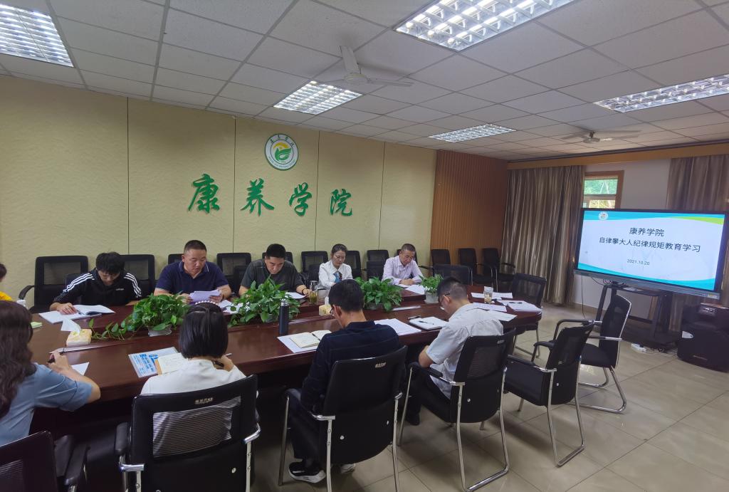 10月20日,康养学院结合学校党史学习教育、师德师风教育的工作要求,组织召开了教职工“纪律规矩”教育专项活动学习。院领导班子成员、各科室负责人和其他教职工参会。