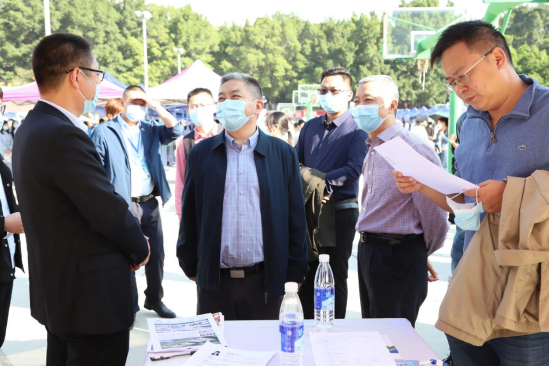 副校长王兵在市人社局领导、招就处及二级学院领导的陪同下走访了双选会现场,与参会企业及学生进行了深入交流。