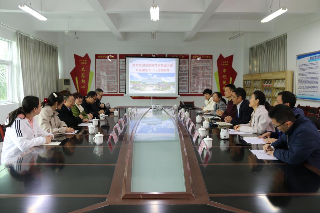 12月3日,绵阳师范学院图书馆馆长刘延刚一行六人到我校图书馆考察交流,来宾在图书馆领导的陪同下参观了校史馆和校园。参观结束后,交流座谈会在图书馆二楼会议室举行。绵阳师范学院图书馆馆长刘延刚一行六人,我校图书馆负责人以及相关负责人参加会议。