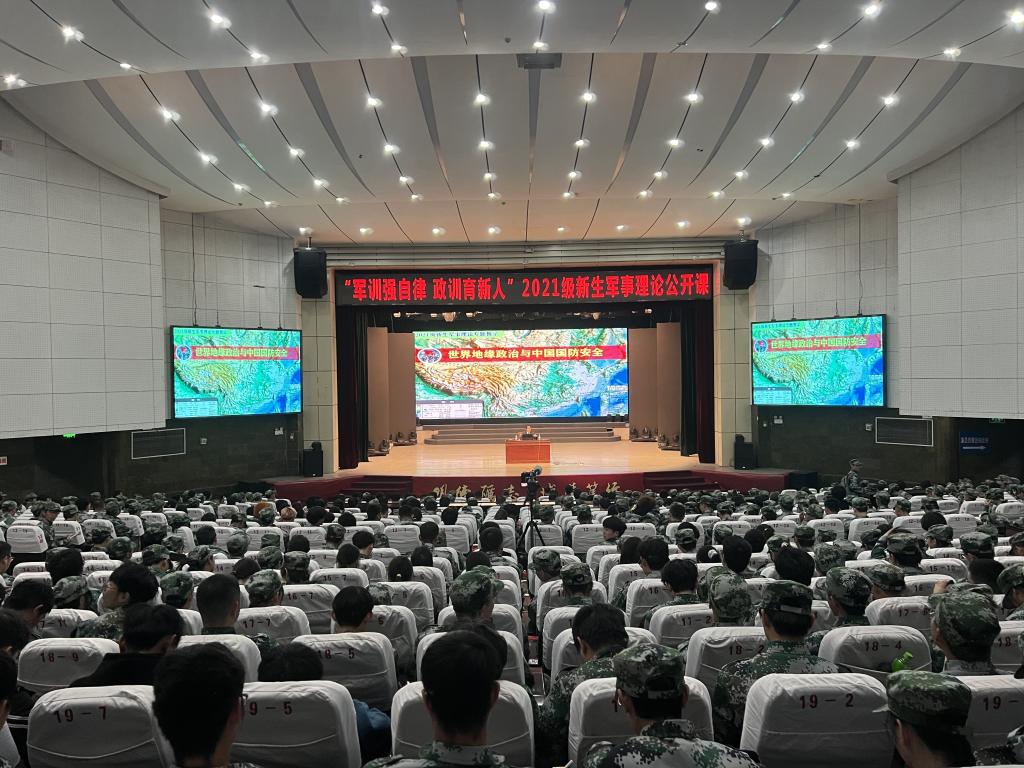 1月5日晚,“军训强自律 政训育新人”2021级新生军事理论公开课在学校会堂开讲,数计学院、钒钛学院2021级新生、辅导员共计700余人,数计学院党委书记张清学担任主讲人。