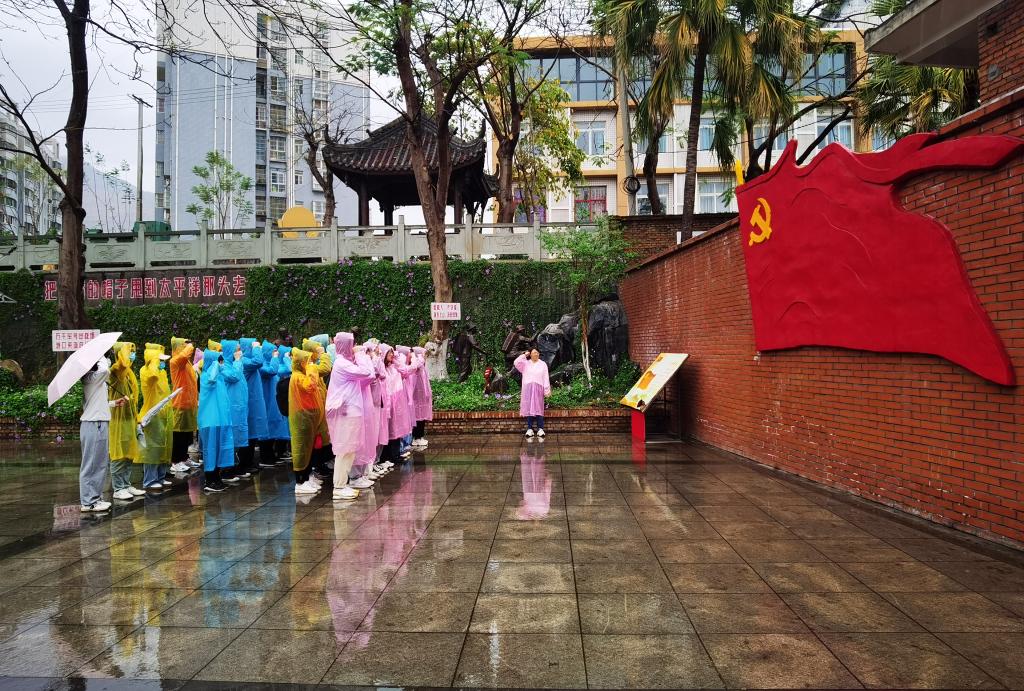 在初心园、《红火年华》拍摄基地,通过浮雕、微场景、图片等形式再现了攀枝花三线建设时热火朝天的生产生活场景,从“席棚子”到“干打垒”“红砖墙”再到“水泥墙”的变迁,从背上铁水桶,重走“背水小道”的沉重脚步,生化学院师生党员亲身感受到三线建设者的艰辛,对“艰苦创业、勇于创新、团结协作、无私奉献”的三线精神有了更深刻的感悟。在雨中,全体党员重温入党誓词,纷纷表示,在今后学习工作中,要传承弘扬三线建设精神,自觉践行“自律攀大人立德树人过程一流”的人才培养要求,为学校建设贡献自身力量。
