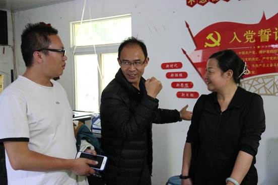 村领导对党建活动室文化墙设计很满意