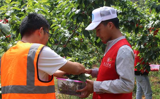 随后,师生们步行至乌喇么组,入户走访独居老人,提供帮扶服务。当听说很多老人家因劳动力不足,大量成熟的樱桃无人采摘且因交通不便导致销路不畅,支部师生当即决定在果农的指导下帮忙采摘樱桃,并利用自媒体平台帮忙销售。