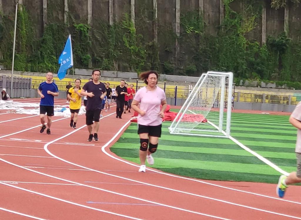 活动中,教职工们精神饱满,热情高涨,奋勇争先。大家在会旗的带领下,沿着足球场跑道不停的跑着、坚持着,所有人都坚持到了最后,顺利跑完了全程。