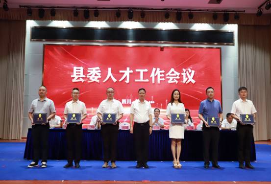 在“人才工作周”启动仪式环节,王兵与会东县四大班子领导一同按下掌印,共同为会东“人才工作周”系列活动启幕。