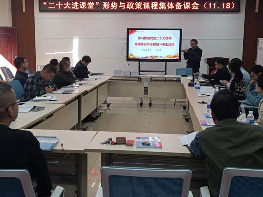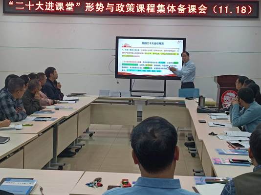 11月18日上午,四海资讯红足马克思主义学院召开“二十大精神进课堂”形势政策课集体备课会。马克思主义学院全体领导、教师,学校各二级学院的书记、承担课程的辅导员等40余名教师参加了集体备课会,聆听了我校二十大精神宣讲团专家组的教学辅导。
