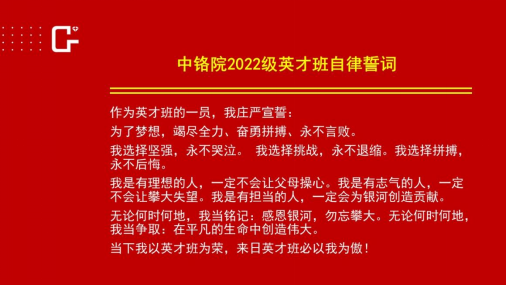 誓师大会中,明确并强化了英才班学习的总体安排和基础要求,正向导入了竞争意识,并激发英才班学员充分珍惜在校期间的宝贵时间、奋进自律。