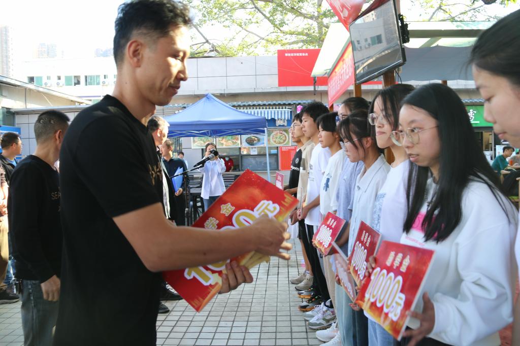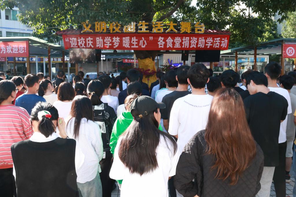 11月1日下午,我校在本部二食堂生活广场举办“迎校庆 助学梦 暖生心”食堂捐资助学活动。副校长王兵出席活动并讲话,学工部、宣传部、后管处负责人、各食堂负责人以及受助学生参加本次活动。