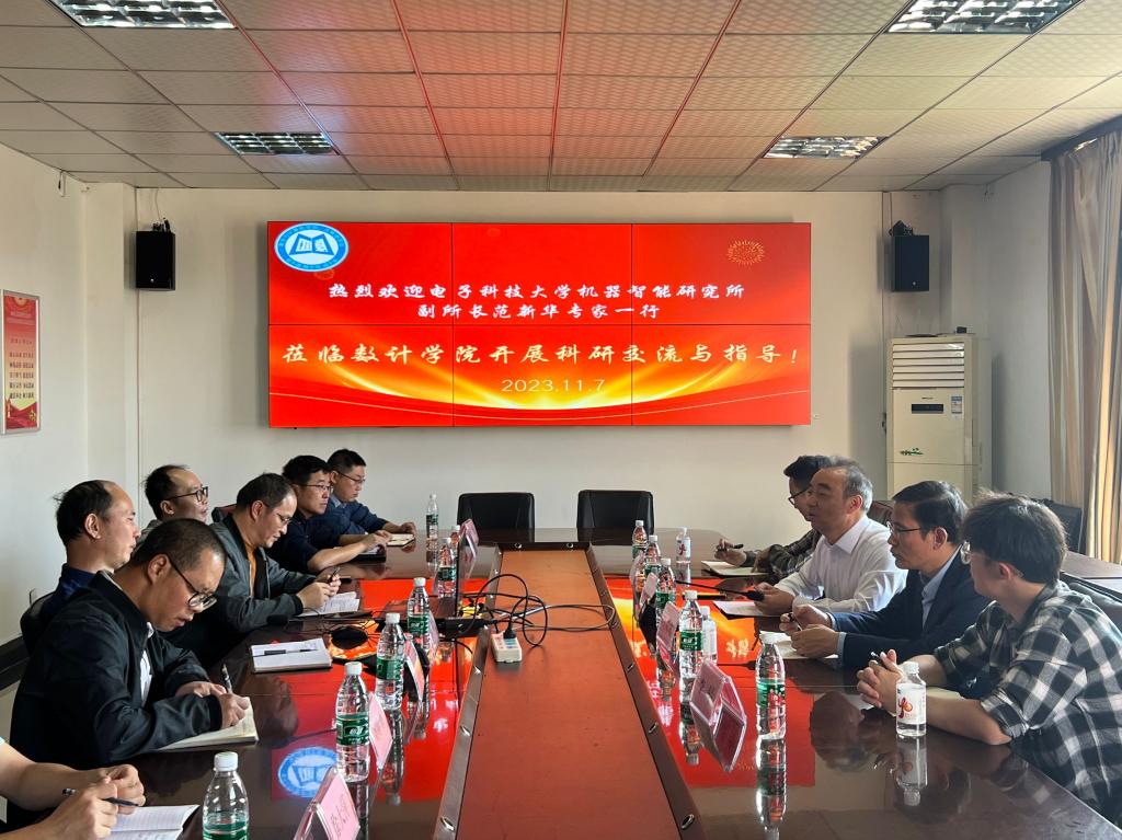 在数计学院的交流座谈会上,双方针对人工智能技术在服务地方经济发展的关键技术进行了深度的交流讨论。范新华介绍了电子科技大学人机智能技术、系统教育部工程研究中心和机器智能研究所在智能康复,机器视觉和人工智能等研究领域的成果。数计学院院长张靖介绍了学院的发展、科研、师资人才等有关情况,副院长罗学刚介绍和交流了学科建设和科研服务地方等方面取得进展和存在的问题。
