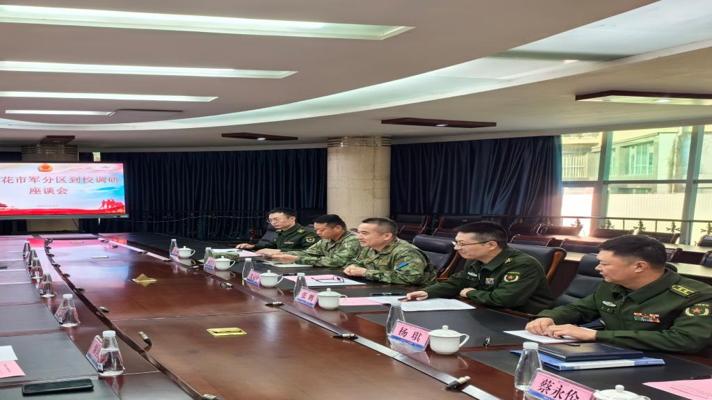 1月12日上午,攀枝花市军分区司令员沈元中一行到校就大学生应征入伍以及退伍大学生教育工作开展调研,校党委常委、副校长石维富,教务处、招就处、学工部、保卫处负责人参加了调研会。