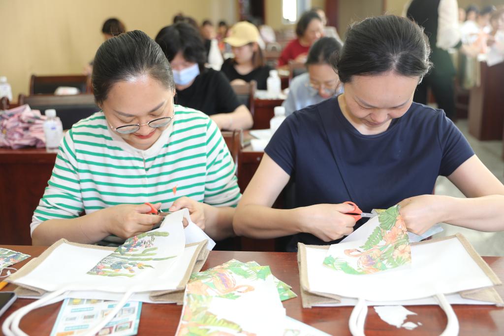 巧手编织幸福。3月7日下午,同样的地点,另一场名为“巧手展慧心 幸福‘袋’回家”的帆布包制作活动如期举行。近60名女教职工在掌握了基本制作要领后,挑选了自己心仪的图案和物品,精心构思、排版、剪裁、刷胶、贴画、按压,力求使每一个制作步骤都尽善尽美。在这个充满欢声笑语的过程中,女教职工们不仅提高了手工制作技能,更感受到了手工制作的魅力,体验了成就感和艺术创造给生活带来的乐趣,丰富了她们的精神文化生活。