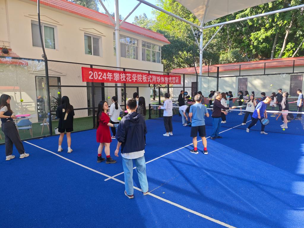 为全面构建大体育、大健康格局,丰富师生校园体育项目,培养师生终身体育锻炼意识。学校体育部于3月23日在攀枝花板式网球中心开展了面向全校师生的板式网球体验式培训活动。此次活动吸引了全校五十余名师生热情参与。