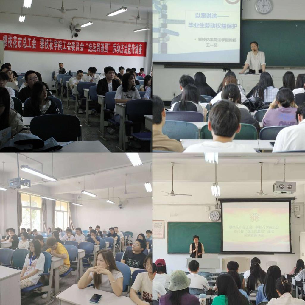 为全面贯彻落实习近平法治思想,进一步加大普法力度,加强大学生对劳动政策法律法规的了解,提高学校毕业大学生法律素养,从容选择就业岗位,3月25日至29日,学校工会、法学院协助市总工会开展了“送法到基层”系列法治宣讲活动。