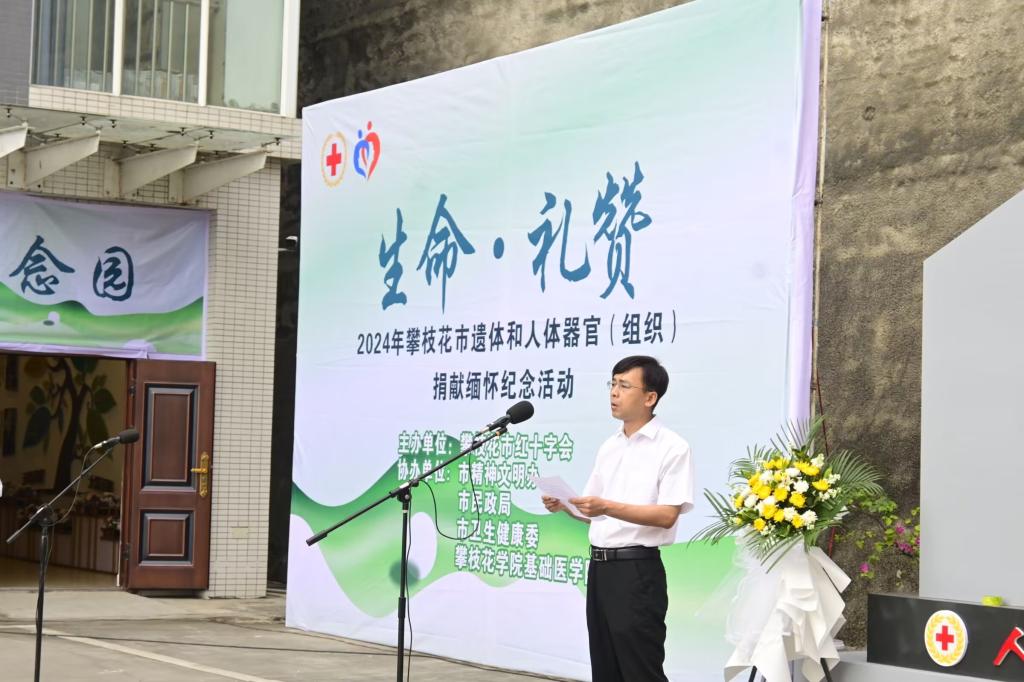 2024年4月3日上午,医学院在医学实验中心解剖楼举行了主题为“生命·礼赞”的遗体和人体器官(组织)捐献缅怀纪念活动,市红十字会、市文明办、市民政局、市卫生健康委、四海资讯红足基础医学院及康养学院领导,全市红十字系统干部、二级及以上综合医院(含中医)、殡葬服务中心、四海资讯红足师生代表,捐献者家属、遗体眼角膜接受单位、器官移植者、捐献志愿登记者、市红十字“三献”志愿者代表共150余人参与本次活动。