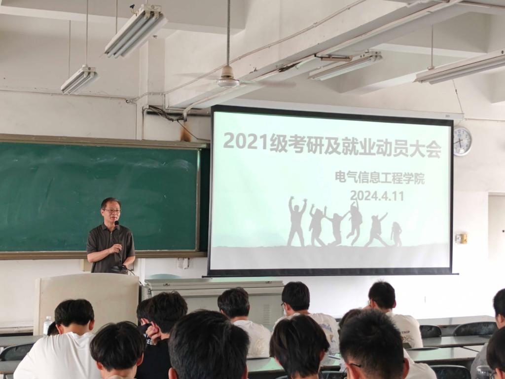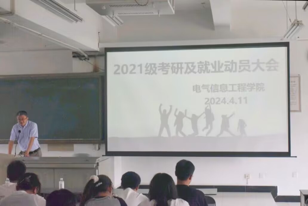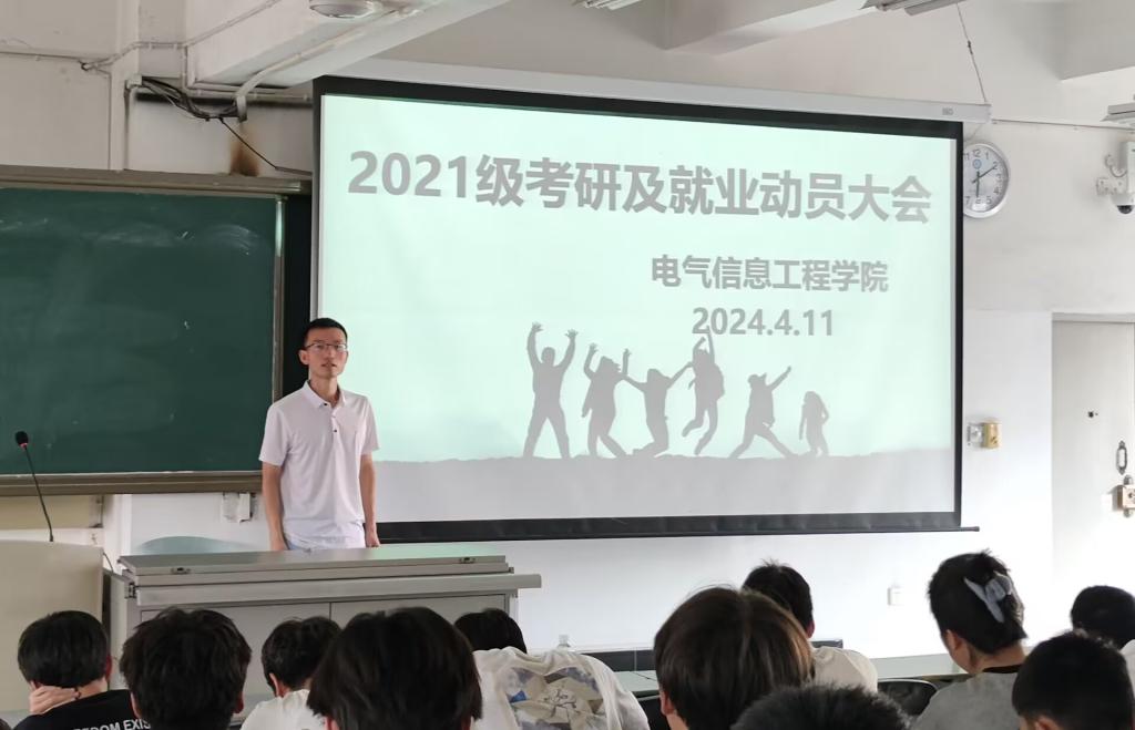 4月11日下午,电气信息工程学院在第二教学楼召开2021级考研动员大会。学院副院长廖其龙,党委副书记唐宇应邀出席本次会议。会议由2021级辅导员王佰川主持。