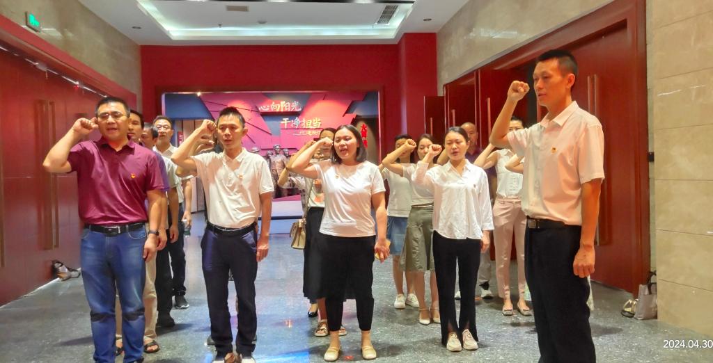 期间,全体党员面向党旗重温了入党誓词。