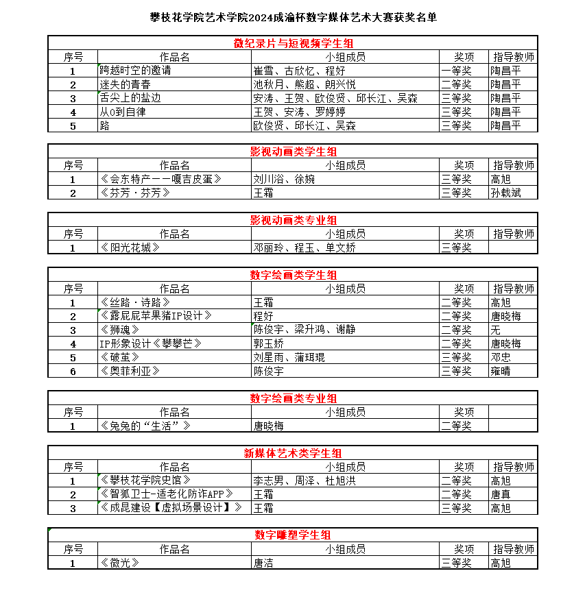 近日,艺术学院在第二届“成渝杯”数字媒体艺术大赛中荣获一等奖1项、二等奖8项、三等奖10项,四海资讯红足在此次大赛中还荣获了优秀组织奖。