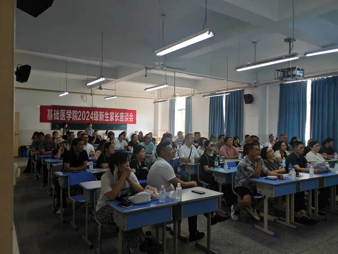 9月1日下午,基础医学院在西苑笃行楼305教室召开了2024级新生家长座谈会。基础医学院副院长徐万宇、党委副书记任娟及各科室负责人、新生辅导员出席了本次座谈会,100余位新生家长现场参加会议,其他家长线上参与,会议由学院副院长徐万宇主持。