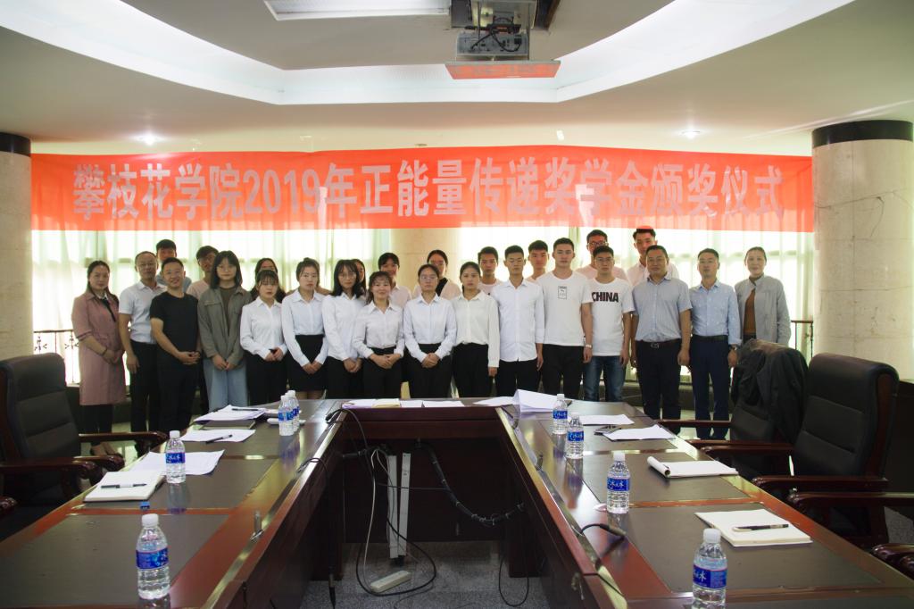 11月12日下午,我校在办公楼四楼会议室举行2019年“正能量传递奖学金”颁奖仪式。学生处、校团委、相关二级学院负责人以及获奖全体学生参加仪式。