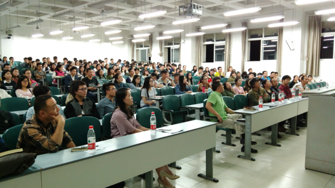 讲座中,张福海结合自身的奋斗和成长经历,向同学们讲述了当代大学生创业面临的机遇与挑战