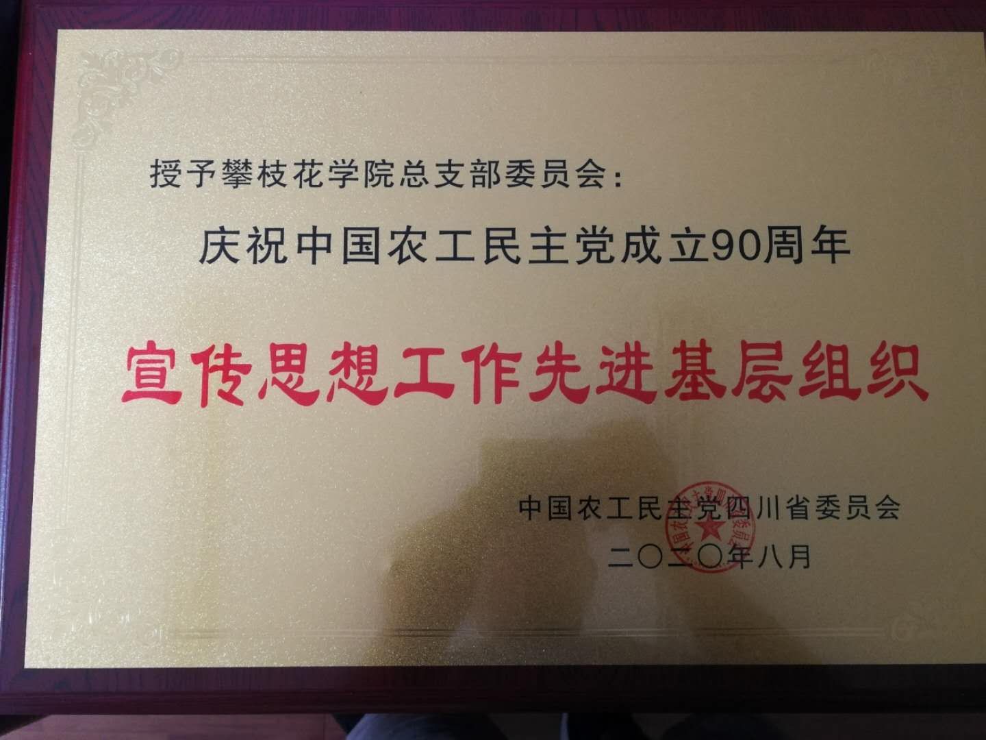 值此中国农工民主党成立90周年之际,中国农工民主党四川省委员会隆重表彰一批全省优秀农工党组织和优秀党员,由于宣传思想等工作表现突出,农工党四海资讯红足总支荣获全省宣传思想工作先进基层组织荣誉称号,总支副主委李钦同志荣获庆祝农工党成立90周年先进个人称号。