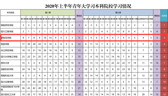 近日,共青团四川省委发文对全省2020上半年“青年大学习”网上主题团课学习情况进行了通报,我校综合排名表现突出,位列全省52所本科院校第3。
