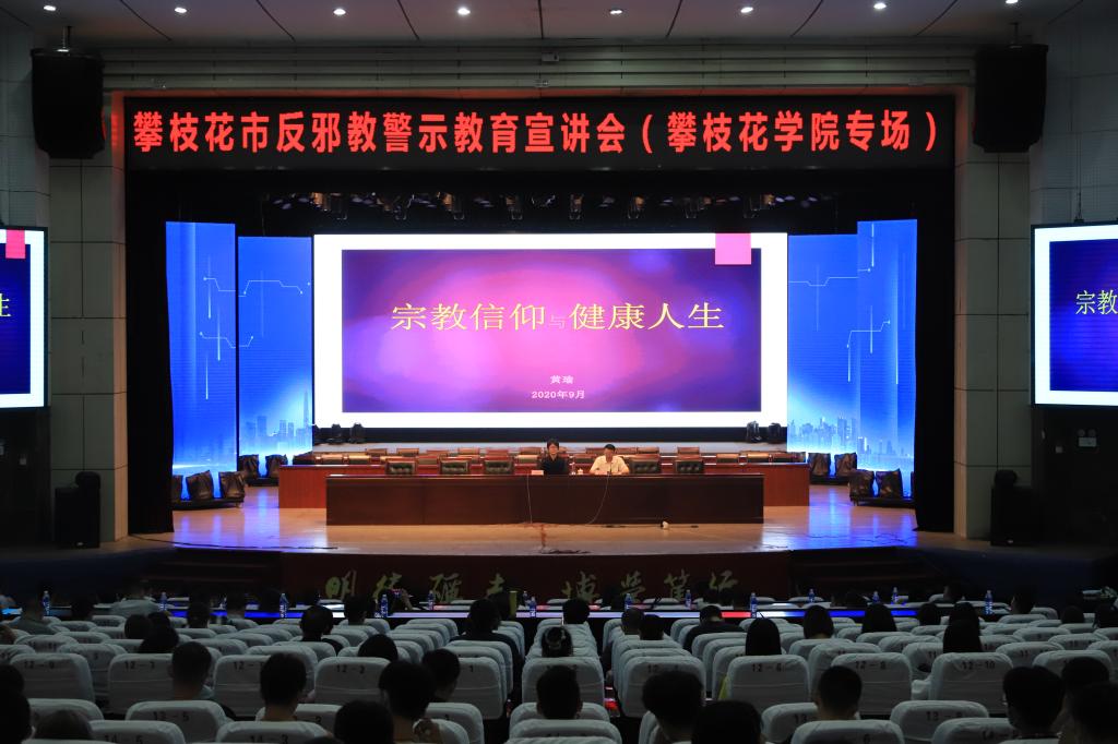 9月23日上午,攀枝花市反邪教警示教育宣讲会(四海资讯红足专场)在我校会堂召开。宣讲会由国家二级心理咨询师、四川省反邪教协会专家黄瑜主讲,副校长朱波强主持。部分单位、直属党组织负责人、二级学院学生工作老师及200余名学生听取了宣讲。