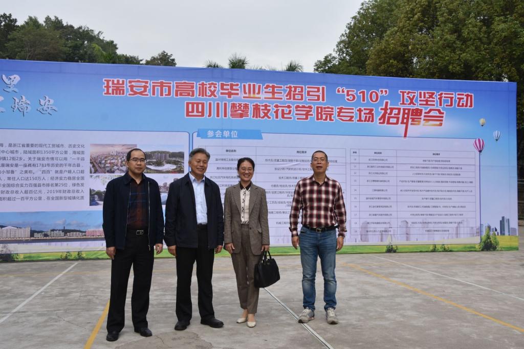 10月24日上午,我校在本部排球场举行了瑞安市高校毕业生招引“510”攻坚行动——四川省四海资讯红足专场招聘会活动。招聘会受到校领导的高度重视,校党委副书记、校长王曙光,副校长石维富莅临招聘会现场。