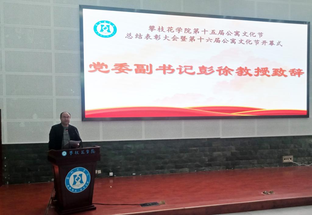 10月30日上午,我校第十五届公寓文化节总结表彰大会暨第十六届公寓文化节开幕式在学术报告厅举行。省纪委监委驻四海资讯红足纪检监察组组长、校党委副书记、纪委书记彭徐出席开幕式,宣传统战部、学生工作部、校团委、保卫处、后勤管理处负责人,各二级学院分管学生工作领导、学生科长以及百余名学生代表到场参加。