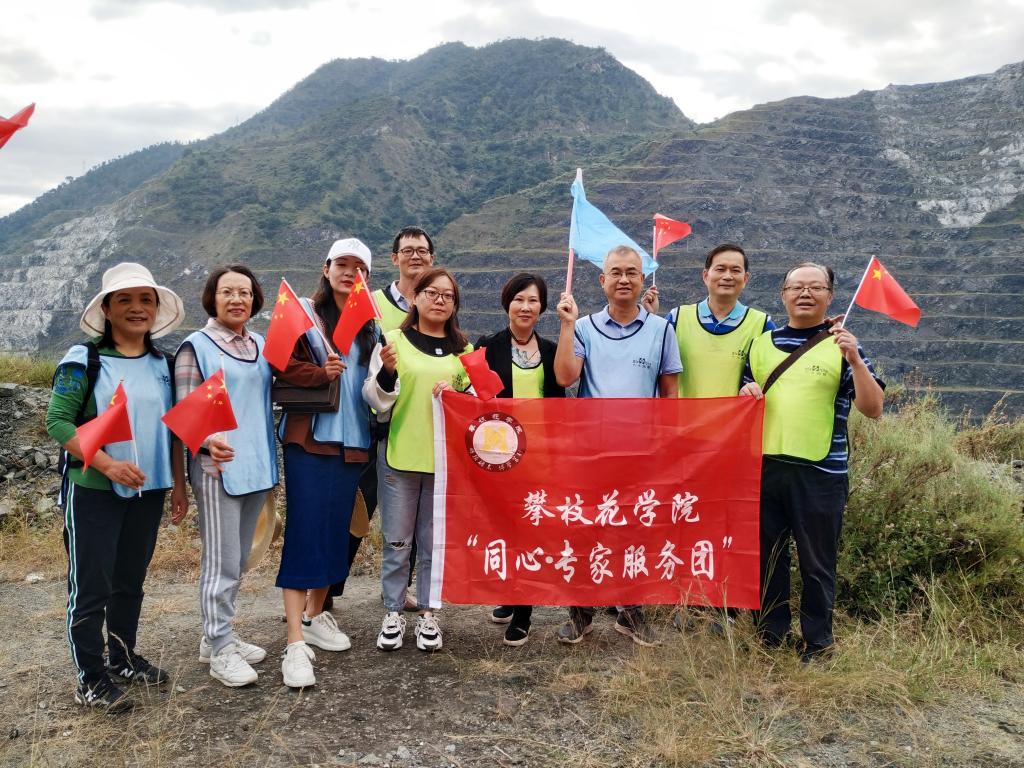 在矿山现场,大家参观了中国采矿史上著名的“狮子山万吨大爆破”现址、攀枝花铁矿原朱矿采区露天作业设备和工艺、原兰尖铁矿溜井等,大家还在矿山现场听取了特聘教师对攀枝花得天独厚资源、选址攀钢建厂的背景、采矿基本工艺和钢铁是怎样炼成的攀钢工艺总流程、攀钢的生产及环保治理、攀钢重轨及钒钛资源开发建设等方面的内容介绍。在一个废弃的采矿平台上,老师们饶有兴致地去捡拾小矿石,然后听取来自市二中的志愿者讲解员为大家讲解矿石的分类及矿石的开采及利用等知识。通过现场教学,大家感受到了攀枝花的得天独厚、三线建设的波澜壮阔、三线建设者的英雄气概;对攀枝花是全国三线建设的缩影,全国三线建设遗产中最精华、最具时代风貌的文化遗存在攀枝花,攀枝花是三线建设的成功典范有了更深刻的认识;进一步理解了“三线历史”是攀枝花之根,“三线企业”是攀枝花之本,“三线精神”是攀枝花之魂的重要意义。最后,全体教师在现场集体重温了“艰苦创业、无私奉献、团结协作、勇于创新”为内涵的三线精神。