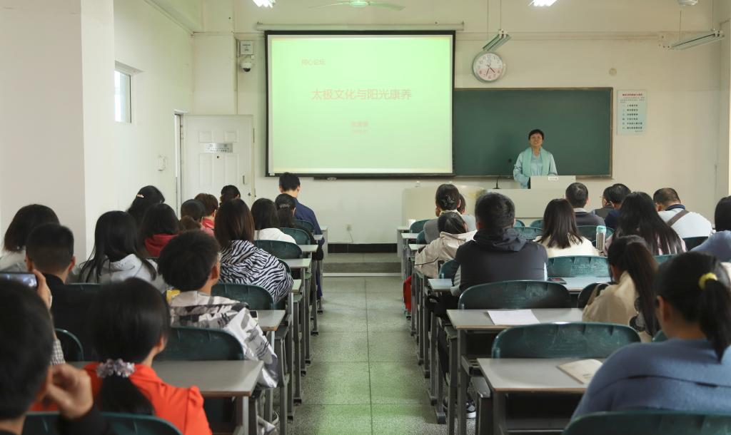 11月4日下午,陈式太极拳温县非物质文化遗产传承人张富香老师应邀来校,在2-404教室举行“留住芳华,享受健康”健康养生专题讲座。学校师生50余人听取了讲座。