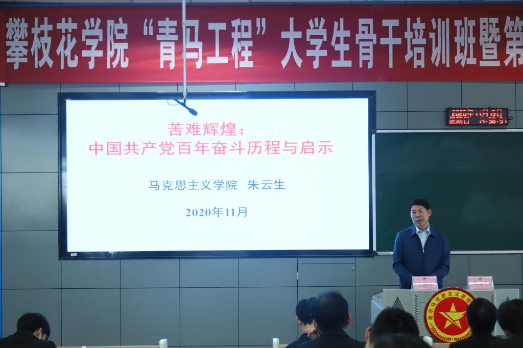 马克思主义学院院长朱云生教授以“苦难辉煌:中国共产党百年奋斗历程与启示”为题进行专题讲座。讲座阐述了中国共产党的奋斗历程以及历史给予现代的启示,帮助学员找准目标定位,鼓励他们积极拓宽国际视野、专业视野、社会视野,把个人理想与国家建设发展紧密结合起来,奋力谱写中华民族伟大复兴的中国梦。