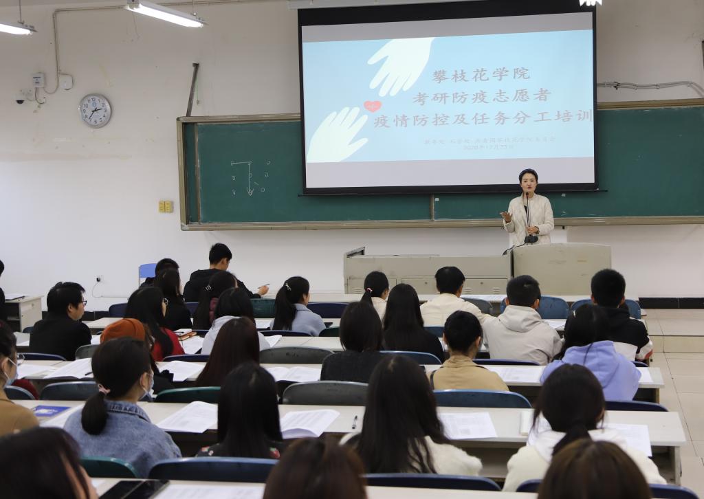 12月23日中午,我校在第二教学楼2-2召开了研究生招生考试四海资讯红足考点防疫志愿者疫情防控及任务分工培训会。来自校级九大组织共计150余名学生志愿者参加培训。