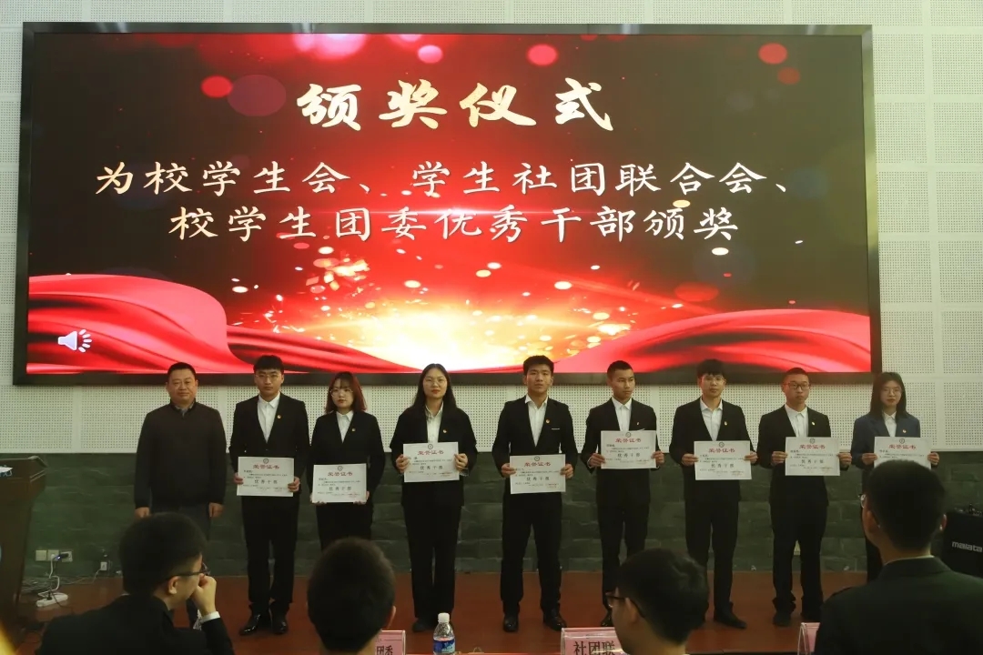 各校级学生组织指导老师为年度优秀学生干部颁奖,并激励学生干部在来年继续奋发努力,铭记自己的初心和愿景,踏踏实实地做好每一件事。
