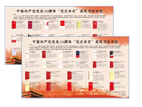 为做好此次书目推荐,图书馆选购了权威出版社出版的重点红色资源。书目来源既有纸质图书,又有电子图书,满足广大师生不同形式阅读的需要。书目选择主题鲜明、内容广泛、导向明确,包涵了解读中国共产党史、新中国史、改革开放史、社会主义发展史的诸多重要著作,具有很强的政治性、历史性和知识性。同时,此次书目发布采取宣传展板、官网主页、企业微信、QQ社群等多媒体和多平台同步推出,营造浓厚的党史学习和研究氛围。