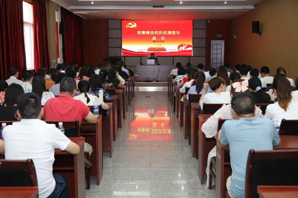 4月21日下午,副校长刘立新在办公楼4楼附楼会议室讲“党章修改的历史演进与启示”专题党课,基础医学院、康养学院、计财处、资管处、教务处、产教融合发展部全体党员参加。