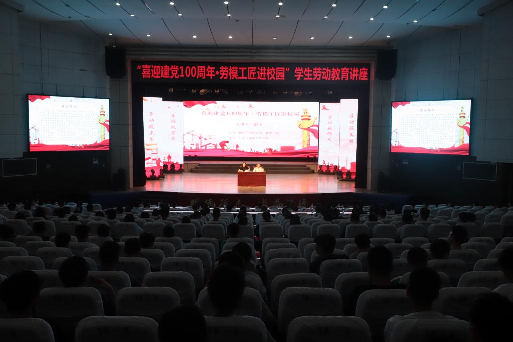 4月21日下午,土建学院邀请全国劳动模范、全国“五一”劳动奖章获得者、省十大杰出劳动模范、省“双增双节”能手、市特等劳动模范、学雷锋标兵——雷永,在学校会堂开展“喜迎建党100周年·劳模工匠进校园”学生劳动教育讲座。校学工部、土木学院师生共计500余人参加讲座。讲座由土木学院党委负责人主持。