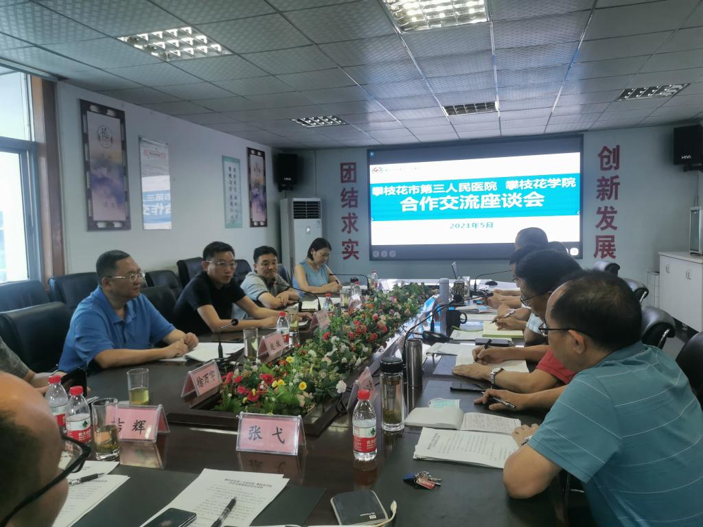 5月11日下午,副校长、医学院院长刘立新,教务处、基础医学院及康养学院等相关负责人一行7人赴攀枝花市第三人民医院(攀枝花市精神卫生中心),就进一步加强校院合作,促进医学教育事业发展进行调研座谈。第三人民医院党委书记贺云明、副院长罗明、陈仁德、喇江平以及部分科室主任参加了座谈会。